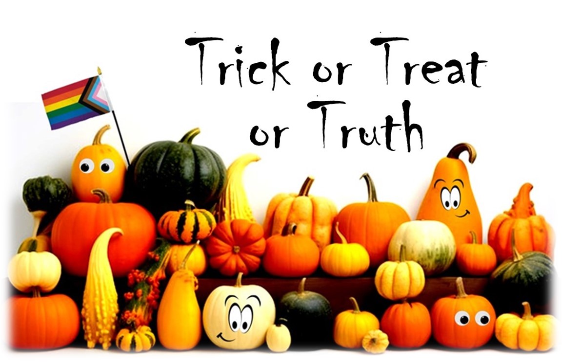 So today, although it’s almost Halloween, we are not about “tricks” or “treats.” We are about having the courage to be about “truth.” We are about honesty and integrity and authenticity. We are about sharing the good news of God’s grace and love and sharing ourselves simply because that is what Love calls and compels us to do.